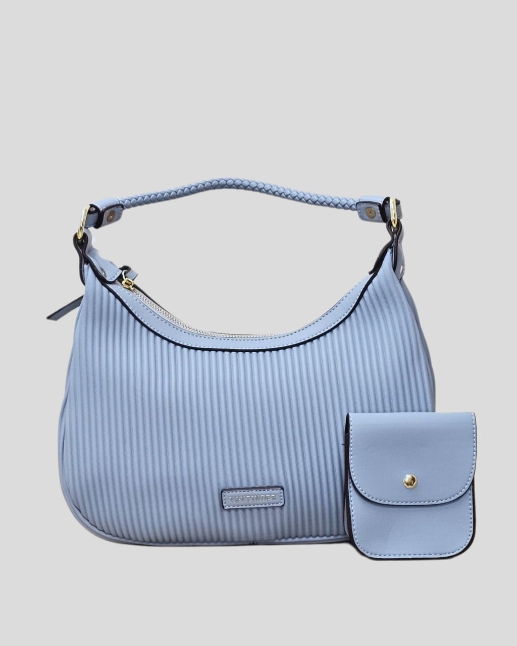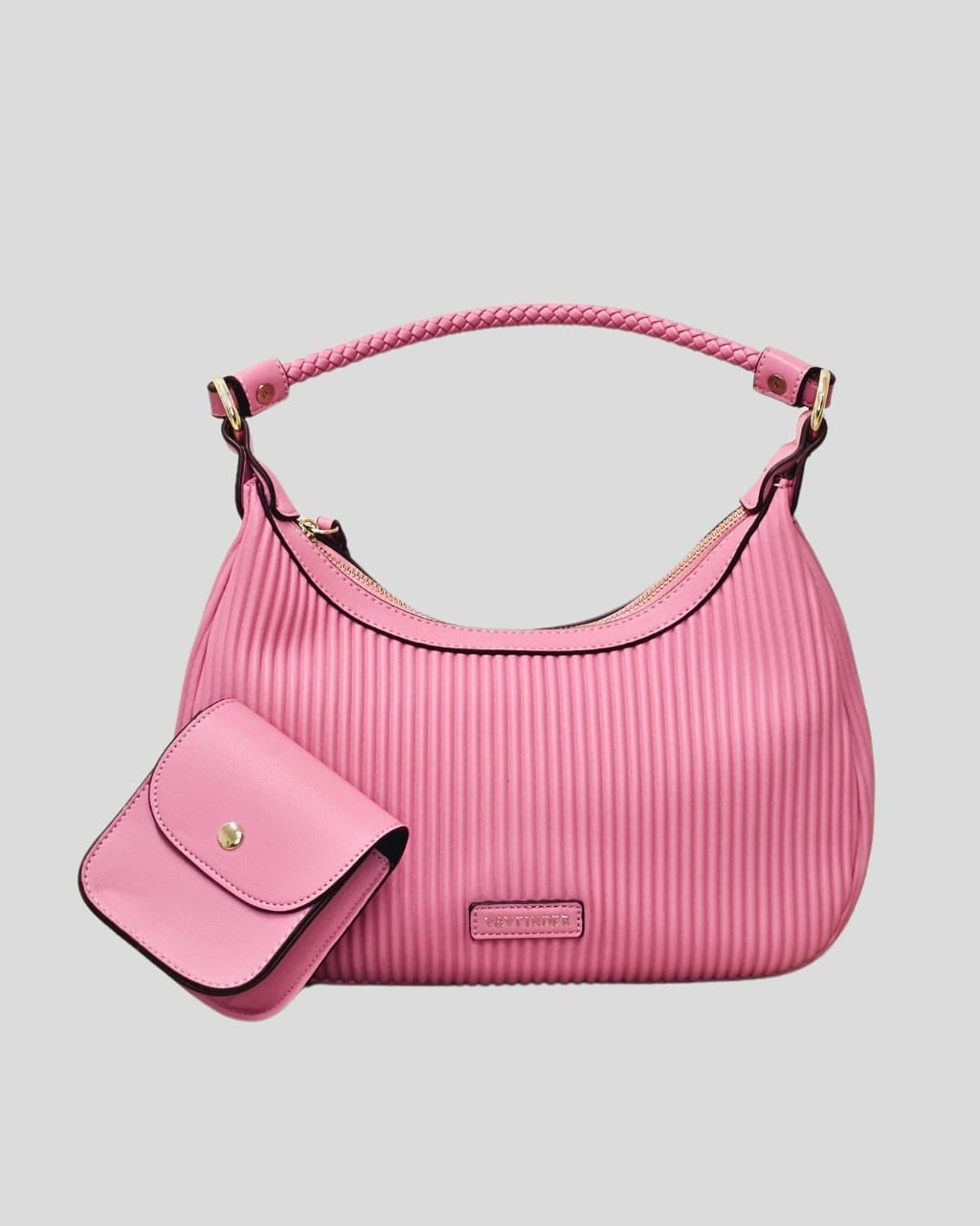 Bolso Tote Media Luna con Pliegues + Monedero, 100% PU (Imitación al Cuero)