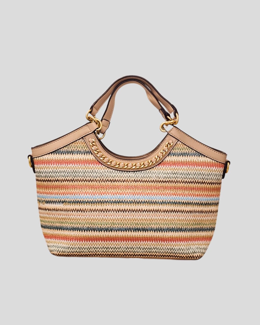 Bolso Tote Mediano de Rafia con Rayas, 80% Polipropileno, 20% PU (Imitación al Cuero).