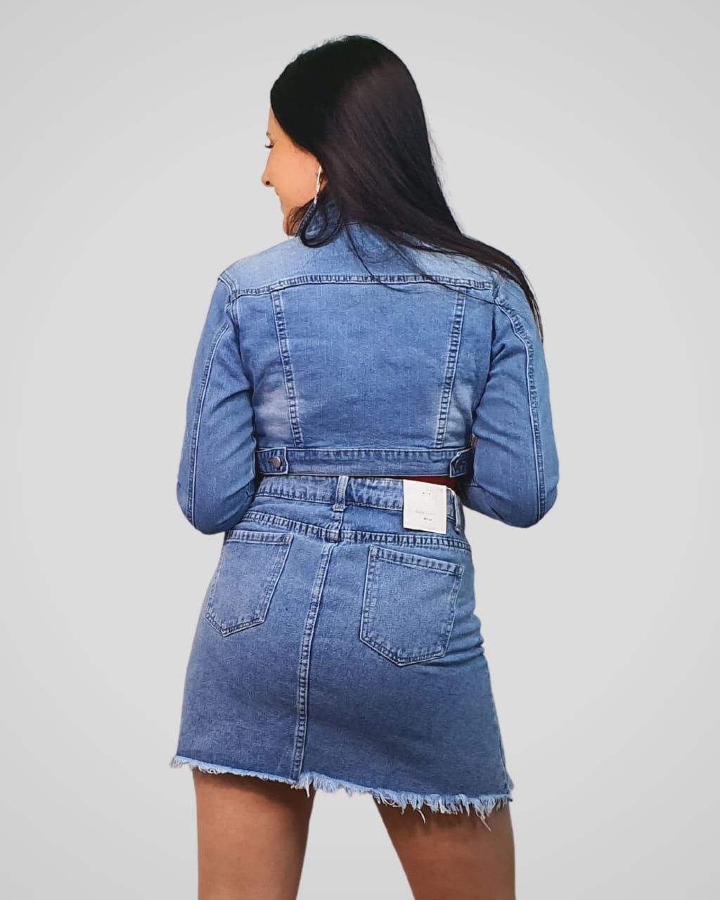 Chaqueta mini entallada tejana, en color tejano claro. Composición: 74% Algodón, 22% Poliéster, 3% Viscosa, 1% Elástico.