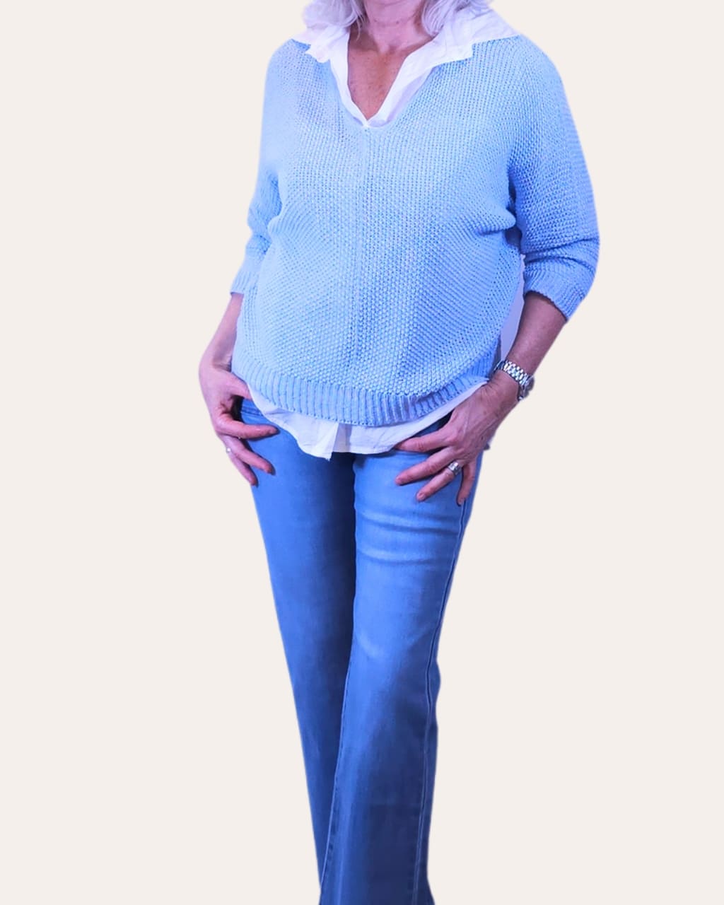 Presenta un favorecedor escote en ‘V’ que alarga la silueta y acabados en canalé en puños y bajo para un ajuste impecable. En AnuSska Moda lo tienes disponible en dos colores luminosos y fáciles de combinar: Blanco y Azul Celeste. Es una pieza cómoda y versátil que no querrás quitarte.