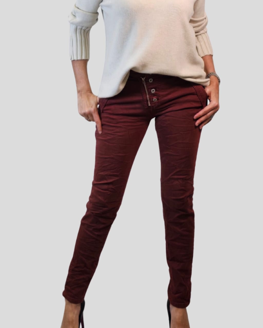 Hazte con el pantalón arrugado cremallera y botones y eleva tu estilo con un toque de sofisticación informal.
